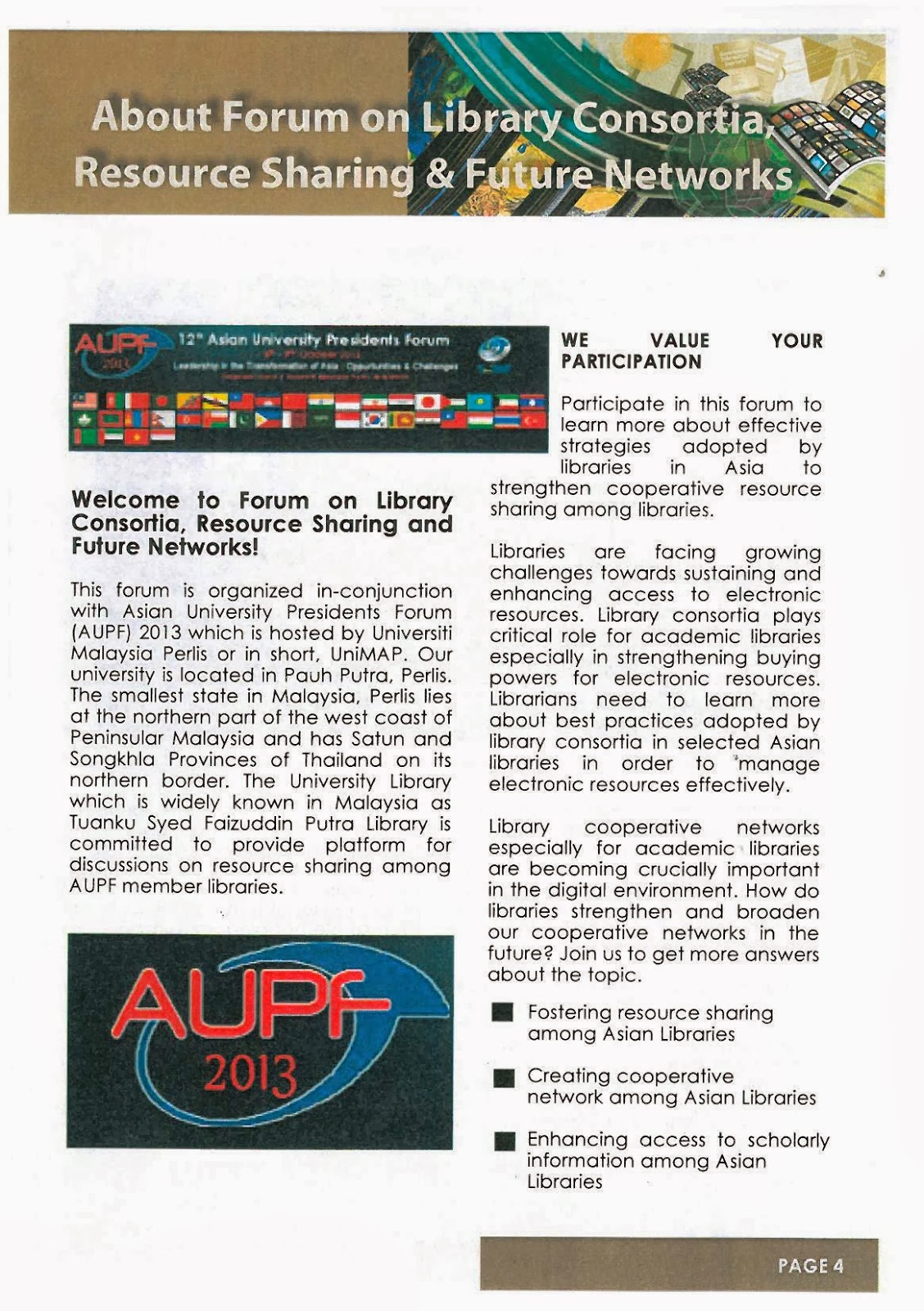 In Conjunction With Asian University President Forum (AUPF 2013)